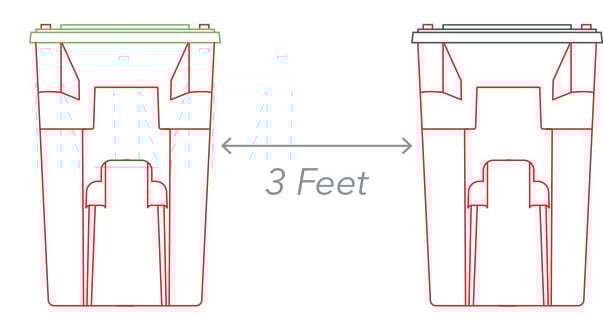 - Please keep at least 3 feet between your totes and any other objects (mailboxes, lamp posts, vehicles etc.).