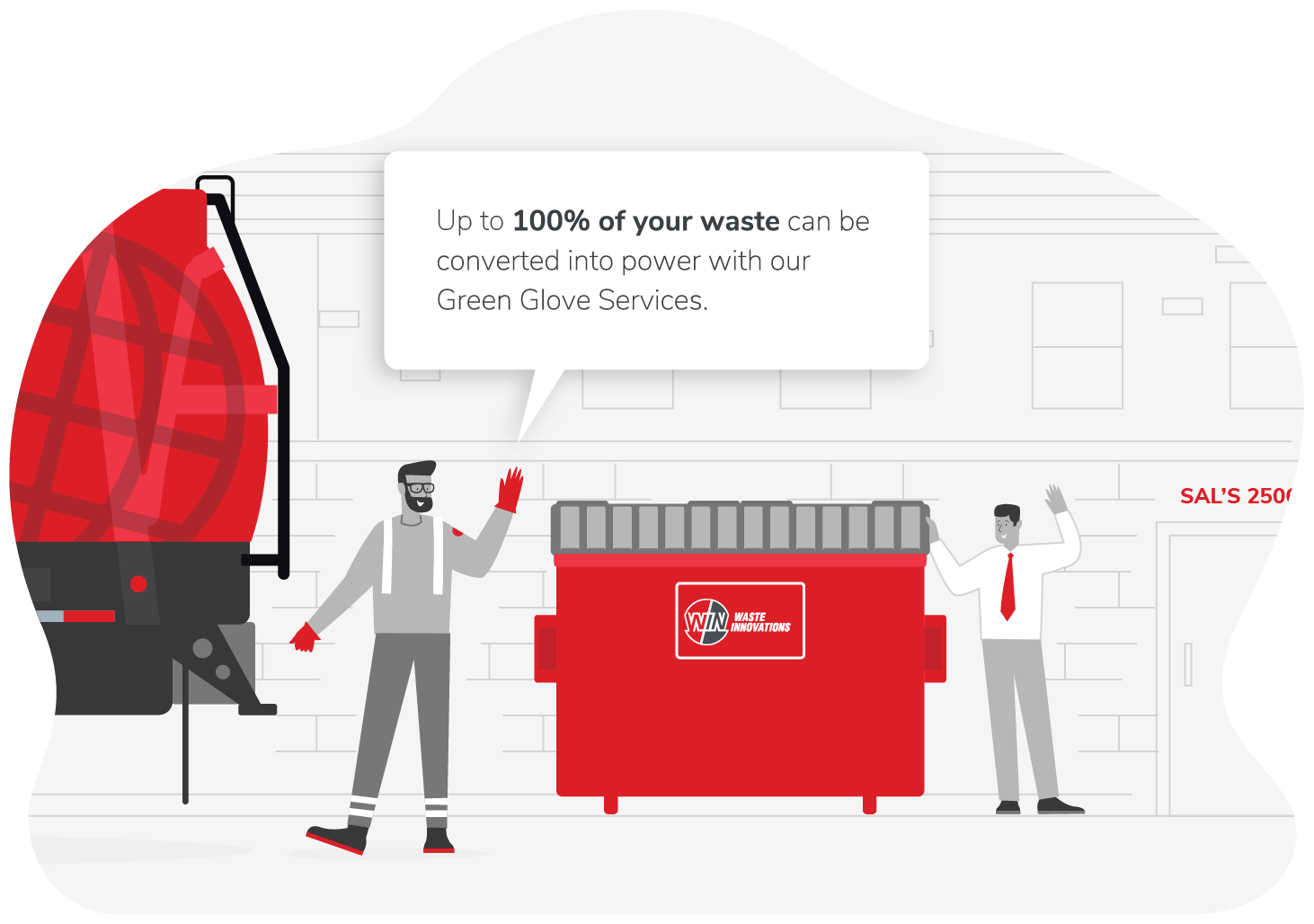 Have waste disposal needs that are big and complex? We offer solutions that are robust, scalable, and customizable. With our Green Glove Services, we’ll work with you on a plan that meets your needs, no matter how big, while minimizing your environmental impact — by converting up to 100% of your waste into renewable power.